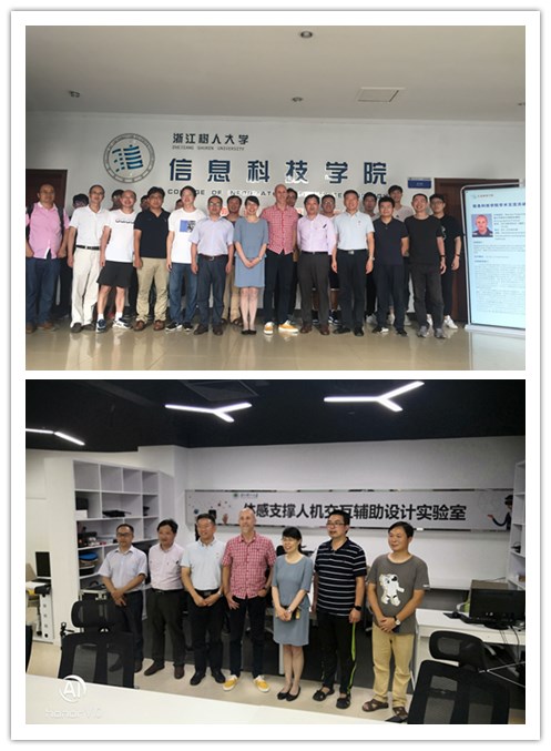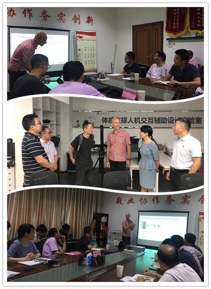 最后,学院教师与Renato Pajarola教授在计算机图形学和数据可视化等方面进行深入交流,会议结束后Renato Pajarola教授参观了学院体感支撑人机交互辅助设计实验室的建设。