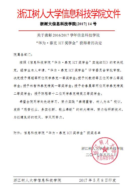 上一条:关于表彰华为网院首届“华为泰克杯”ICT技能竞赛获奖同学的决定