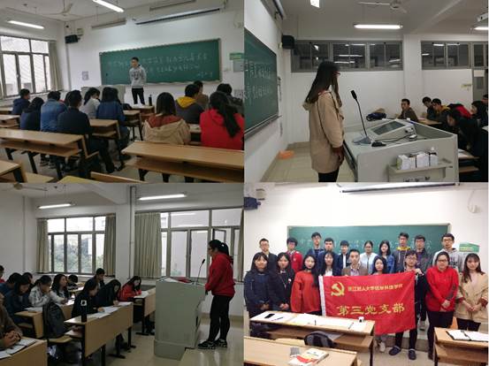 会上,积极分子们展现了他们的风采,给答辩小组成员留下深刻印象,他们的自我介绍讲出了各自的入党动机、未来的规划、自身的优缺点,如有的同学积极参加科技竞赛,有的同学在运动方面表现突出,有的同学注重寝室团结和卫生整理。相信不久后在新生力量的加入后,第三支部会有新气象。在结束答辩后,支部副书记夏银飞围绕十九大的会议精神,结合优秀课堂、文明寝室建设做了一次微党课,分享了她自己的心得体会,令大伙收益匪浅。