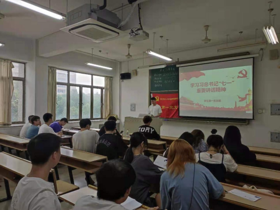 在活动之前,每位支部党员先分享了自己对于习总书记讲话的感悟,然后由支部书记孙裕超老师对这次学习活动进行了总结。总结支部党员的发言可以看出。在本次大会的讲话中,习总书记追忆了建党百年历史,并对如何开创中国的未来做了展望。