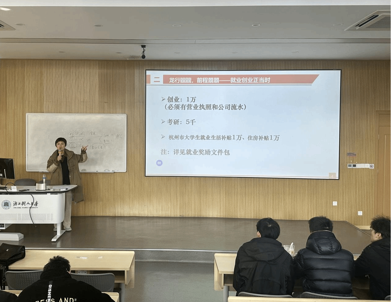 会议第二阶段,学院副书记丁健龙及毕业班辅导员向毕业生们介绍毕业注意事项、就业方案上报流程,对就业奖励相关制度和文件进行详细解读,同时强调在毕业环节人事档案、党团组织关系转接事宜的重要性,为毕业生顺利毕业、顺利就业提供充分支持和指导。