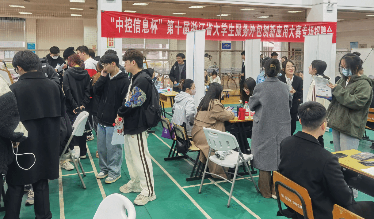 2023年12月10日我校承办的“中控信息杯”第十届浙江省服务应用大赛如期举行,为做好大赛参赛学生以及IT专业相关学生的实习和就业服务工作,同时更好地为我省数字经济、IT和服务外包企业服务,当日下午15:00“中控信息杯”第十届浙江省大学生服务外包创新应用大赛IT和服务外包人才专场招聘会在我校举办。浙江商务厅服务贸易处处长庄谨、我校副校长叶时平在伟德BETVLCTOR1946党政领导班子的陪同下来到招聘会现场,与企业开展深入交流,与学生进行亲切的交谈。