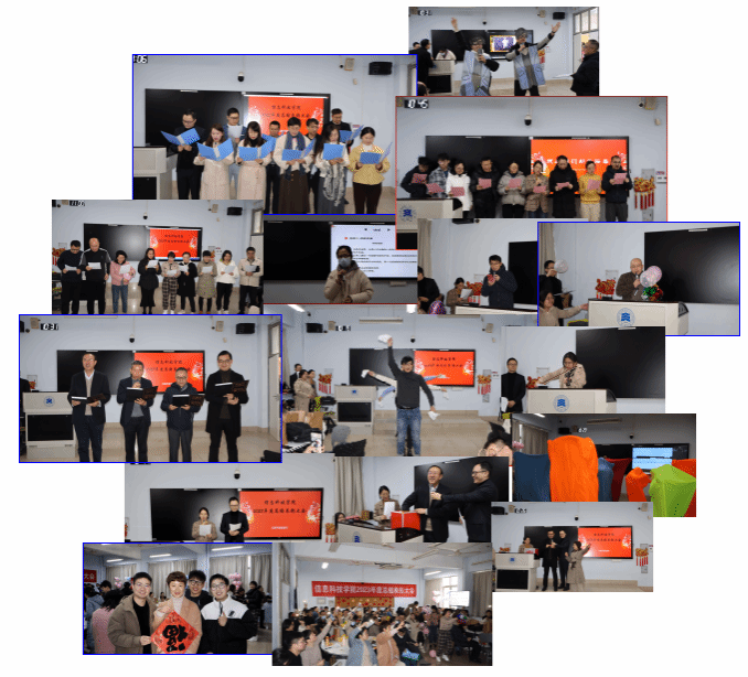 随后,学院团拜系列活动在欢声笑语中紧锣密鼓地开始了。作为开场秀,人工智能教研室的全体老师为大家献上了集体舞“眉飞色舞”,引来阵阵喝彩。其后,小提琴独奏、诗朗诵、独唱、“最炫信息风”……老师们集思巧想,结合当下时尚流行元素,竞相展现独特的魅力,活动现场笑意浓浓、暖意融融。精彩纷呈的游戏环节及抽奖环节穿插其中,猜歌识曲引来阵阵回忆杀,食速英雄展现参赛队伍的默契配合,一、二、三等奖的出炉更是将现场欢快喜庆的氛围推向了高潮。