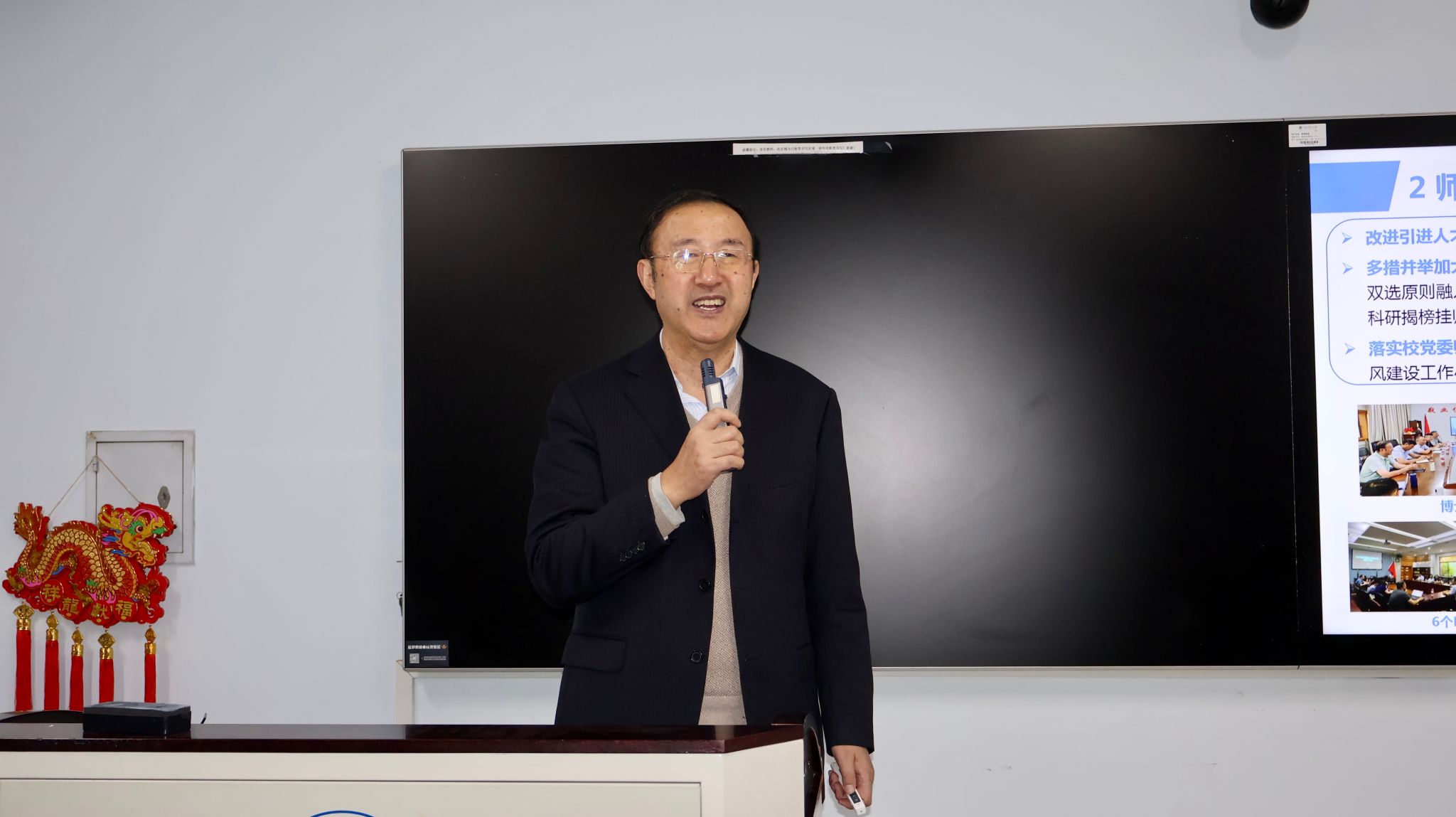 在听取学院总结汇报后,副校长叶时平围绕科研、教学育人、师资团队等方面进一步总结了学院一年来取得的亮点工作和重点突破,并提出学院需扎实做好申硕冲刺阶段工作,未来从团队建设、教学育人、产业学院建设、学生科研等方面进一步抓好做好,全院需凝聚力量,在保持学院原有优势的基础上,全院师生齐心协力、团结奋进,推动学院更高质量发展。