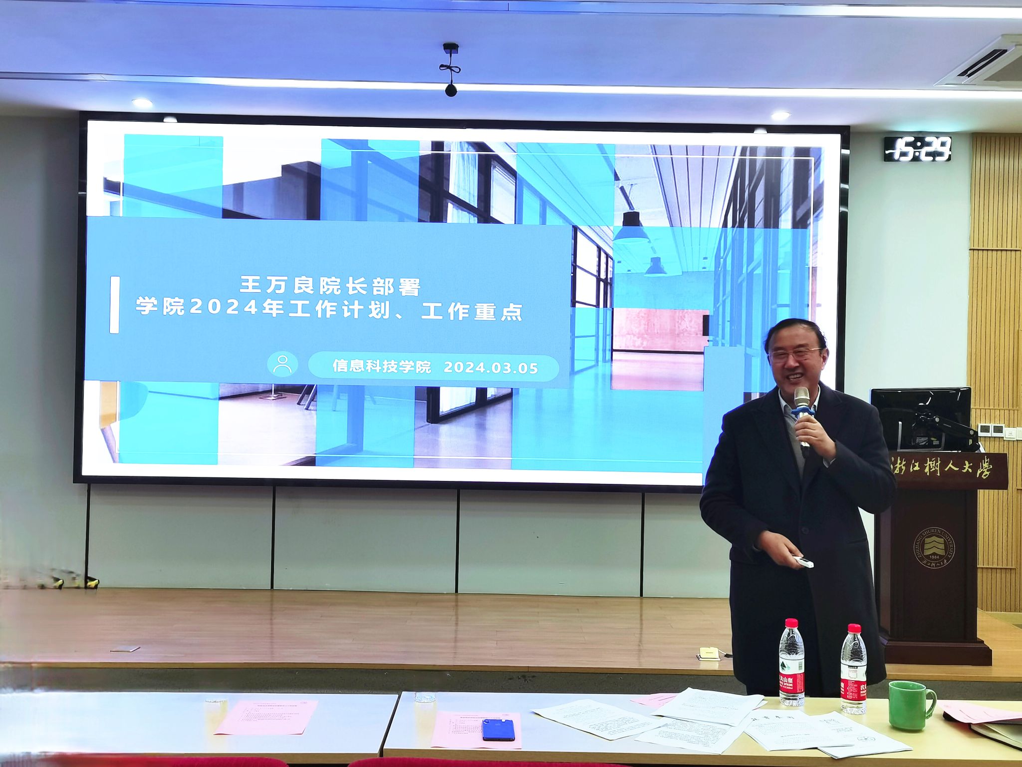 王万良院长从提升党建工作质量、提升人才培养质量、强化学科内涵建设、提升学生管理水平和增强制度执行能力方面布置了2024年度学院工作计划、工作重点,他希望,大家要掌握新理论、新思想,做研究型教师,在教学实践中学习、思考、研究。他希望,以“四十周年”校庆为契机,勠力同心,奋发有为,在各自的岗位上做出应有的贡献,开创学校事业发展新局面。