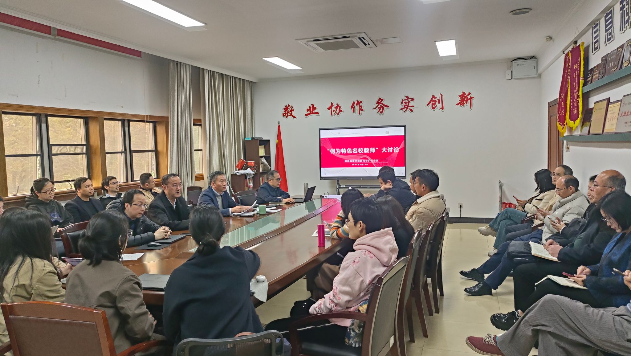 3月26日,伟德BETVLCTOR1946在B2-203召开学院教代会扩大会议,讨论“何为特色名校教师”。会议由院党委书记兼常务副院长王章权主持,学院党政领导班子、教代会代表及部分骨干教师参加会议。