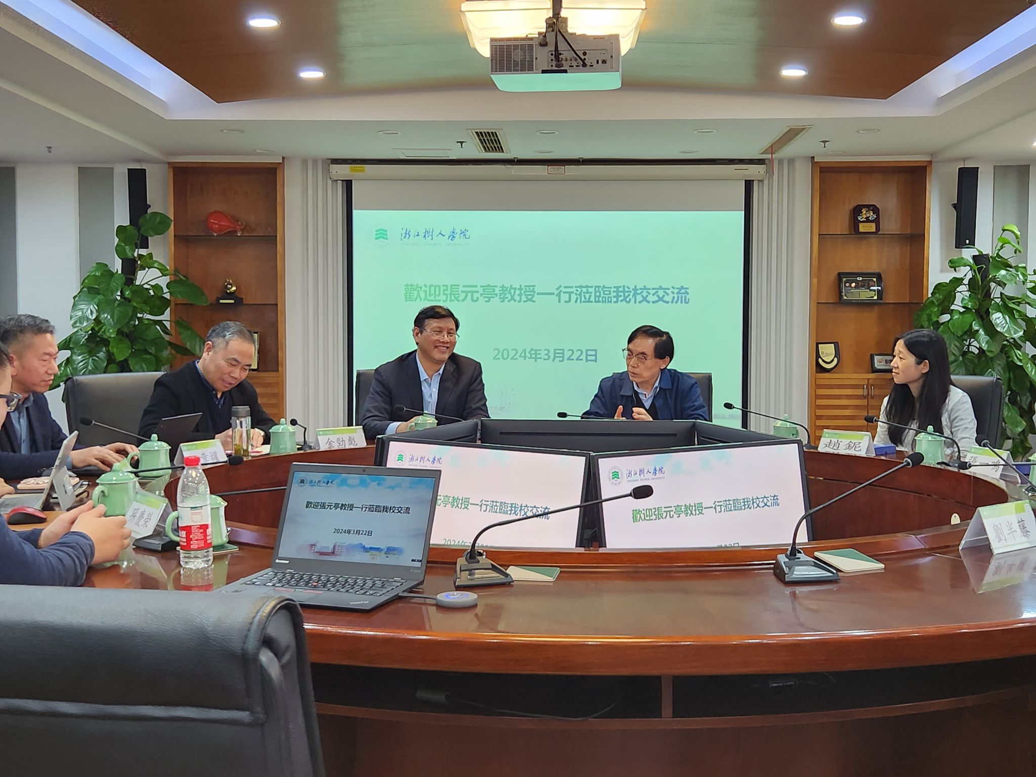 会后,叶时平向张元亭、赵铌教授介绍了学校40周年校庆安排,并邀请其参加今年11月将举办的“智慧康养国际论坛”。