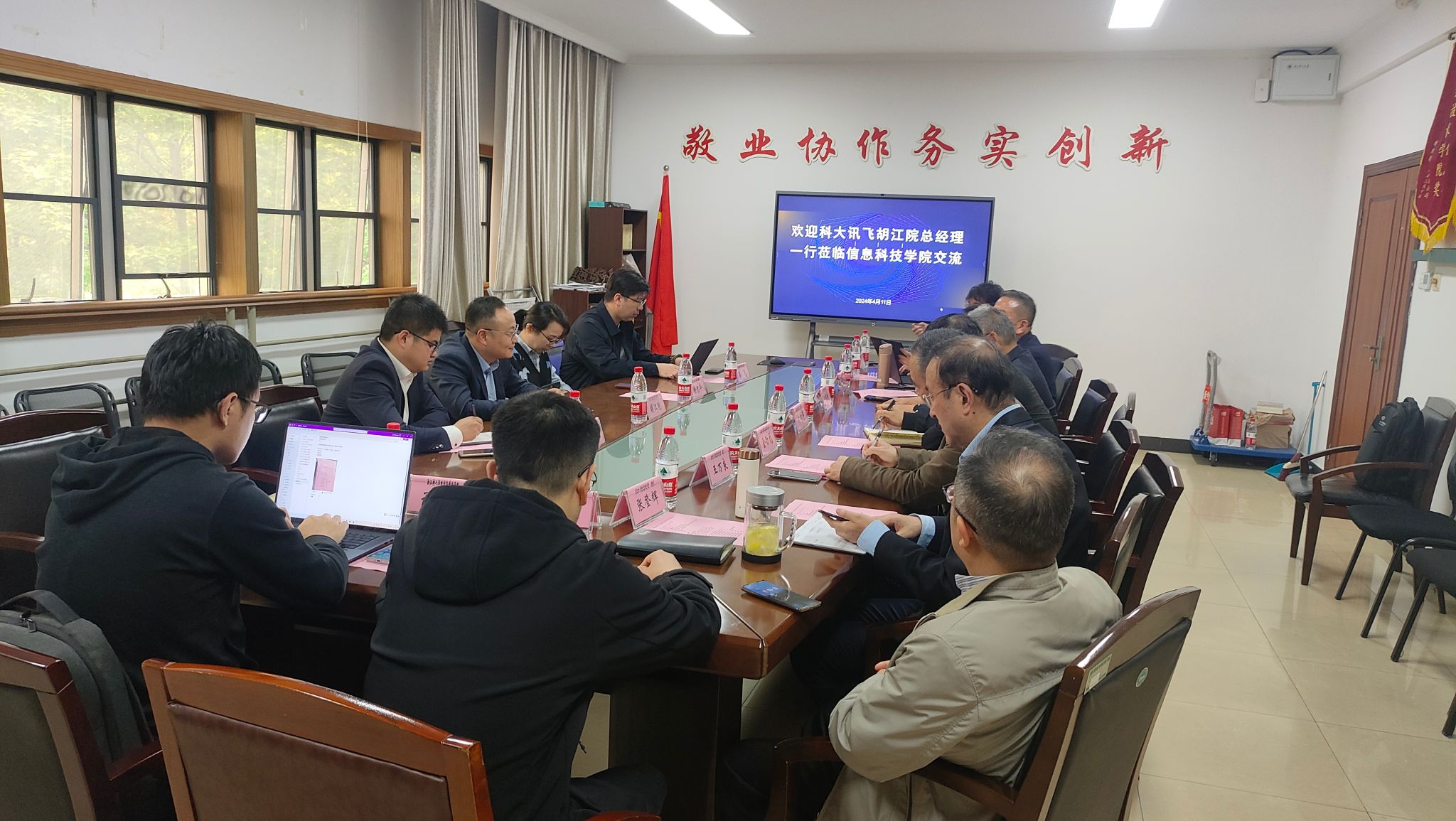 会上,叶时平对胡江院一行的到来表示热烈欢迎。他回顾了学校与科大讯飞公司近几年合作交流情况,在讯飞的大力支持下,先后建立了树人-科大讯飞人工智能产业学院、科大讯飞“AI+”工程师培养实践基地,特别感谢其在电子信息硕士学位点建设中给予的支持和帮助。他简要介绍了计算机科学与技术学科的概况、学科主要研究方向、研究成果、应用案例、专业建设、产业学院建设等基本情况,希望双方充分利用科大讯飞在人工智能领域的主导优势和学校医信融合发展的特色优势,强化校企产学研协同创新,助推学校新医科为引领的学科建设,并在人工智能专业建设、人工智能技术应用关键技术的协同攻关、基于医工信融合的工程中心共建等方面取得较好成效。