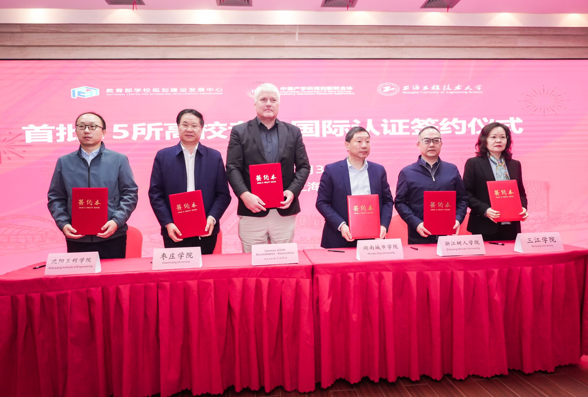 本次会议由教育部学校规划建设发展中心主办,上海工程技术大学承办,ASIIN 认证协会和慕尼黑应用科技大学协办,旨在贯彻落实全国教育大会精神,深化我国高等工程教育改革,高质量推进中国高校专业国际认证工作。德国 ASIIN 认证协会主席 Prof. Dr. Klaus Kreulich在大会致辞,德国 ASIIN 认证协会秘书长 Iring Wasser 博士做了题为《推进专业国际认证,建立国际范围内的“通 用的”质量保障体》的主题报告,上海工程技术大学副校长夏春明做了《专业国际认证制度建设,是落实学校国际化 及促进教育教学的质量提升的重要举措—以 上海工程技术大学为例》的主题报告,中德产学研用创新联合体秘书处介绍了以专业国际认证为抓手推进中德高质量合作的途径。同时,大会还举行了首批 15 所高校专业认证签约仪式,张登辉副院长代表学校签约。我校是首批15所高校之一,伟德BETVLCTOR1946、生物与环境工程学院分别有2个、1个专业提交了ASIIN专业国际认证申请。