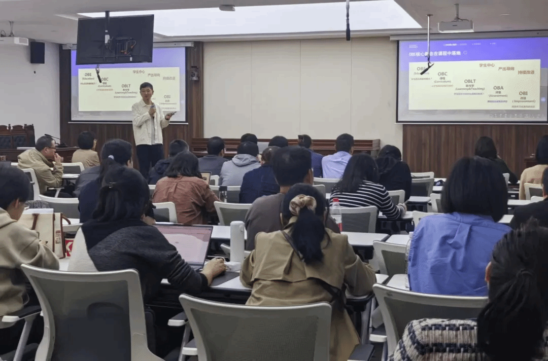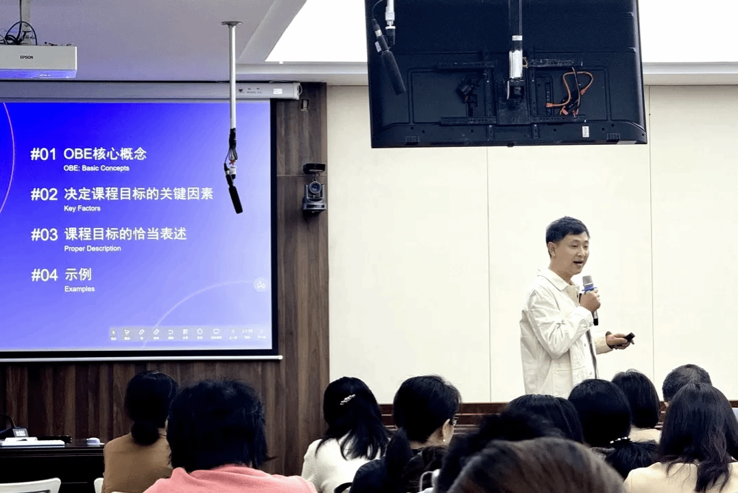戴老师强调了教学思维的更新换代,他指出,在不断变化的时代背景下,教师必须与时俱进,以满足社会对大学教育的全新要求。无论是课程大纲的制定、专业培养方案的规划,还是教学实施的具体操作,都应该遵循先进的教学理念和原则。OBE教育理念,是一种以成果为导向,以学生为中心,采用反向设计、正向实施方式开展教学的课程体系建设理念,具有成果导向、能力导向、目标导向、需求导向的特点,对于课程目标设计有着重要的指导意义。