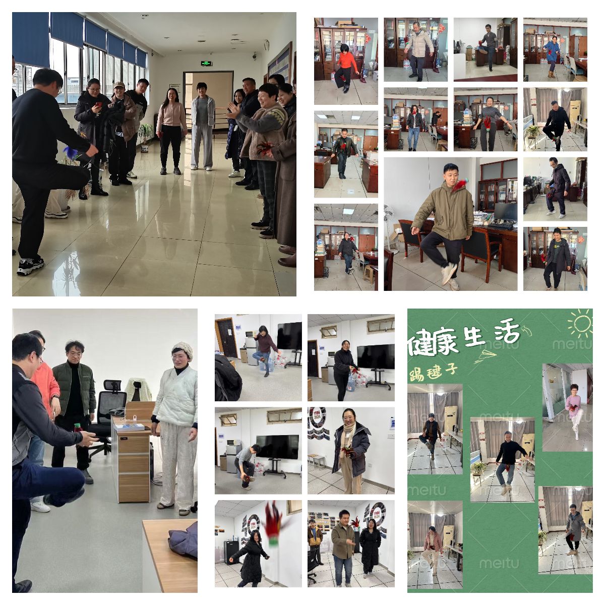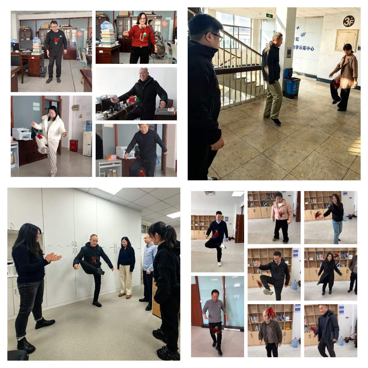 活动于12月13日至12月17日进行,覆盖了伟德BETVLCTOR1946行政办公室、实验中心及各教研室。各部门在院办领取毽子后,纷纷组织教职工开展踢毽子活动。