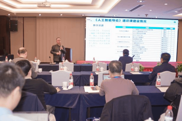 张登辉教授在下午的论坛中作了“人工智能通识AI融合课程的建设与实践”报告,在报告中展示了我校的学科专业建设成果,介绍了我校“课程+AI”实施方案和AI融合课程建设计划,重点对本学期全校开展的“人工智能导论”通识课的建设与教学实施成效作了详细介绍,报告结束后,针对与会专家感兴趣的议题进行了交流。