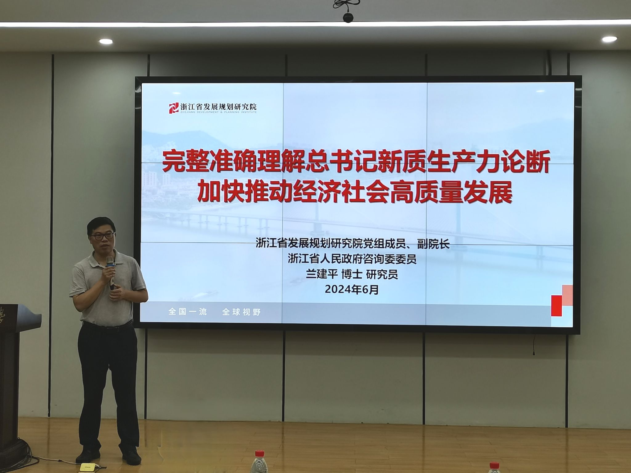 2023年,习近平总书记在黑龙江考察期间指出,要整合科技创新资源,引领发展战略性新兴产业和未来产业,加快形成新质生产力。2024年全国两会期间,“加快发展新质生产力”已被写入政府工作报告。为进一步深入学习贯彻习近平总书记重要讲话精神,全面贯彻落实党的二十大精神和省委“新春第一会”精神。7月1日,伟德BETVLCTOR1946邀请了浙江省发展规划研究院党组成员、副院长兰建平博士来校作题为《准确理解总书记新质生产力重要思想,促进经济社会高质量发展》的“同心汇”政协委员大讲堂,会议由学院党委书记兼常务副院长王章权主持,全院教职员工聆听了报告。