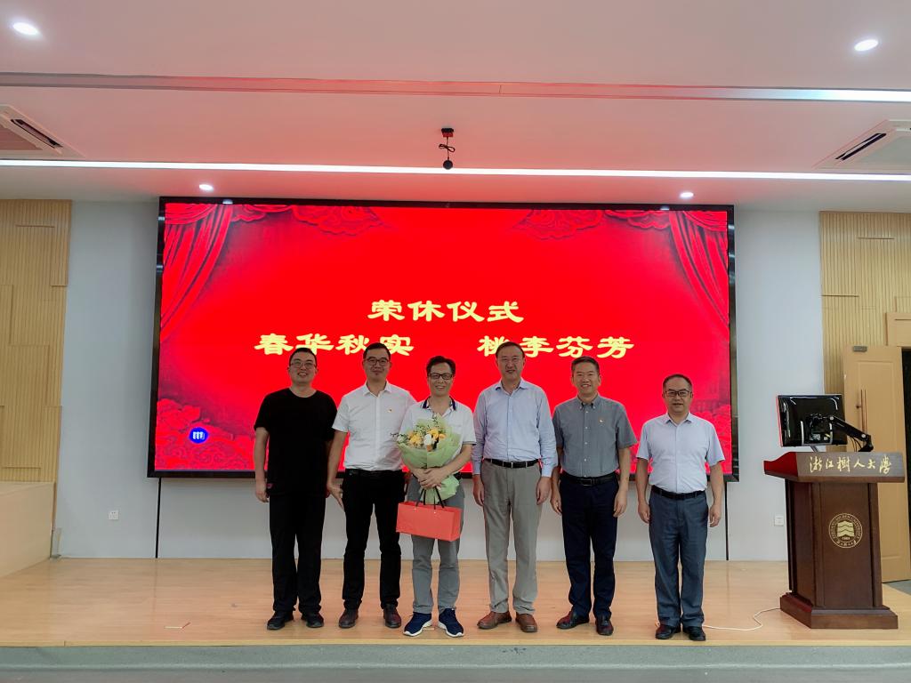 “弦歌不辍,薪火相传,栉风沐雨,春华秋实,对党忠诚诲人不倦,教书育人矢志不渝……”王章权书记揭开了荣休仪式的序幕,他代表学院对光荣“毕业”的白直灿老师辛苦耕耘的教师生涯进行了高度赞誉,祝福白老师未来生活身体健康、顺心顺意,希望白老师能发挥余热,继续为信息学院出谋划策,信息学院永远是他温暖的港湾。新进博士洪峰为白老师献上鲜花,白老师手捧鲜花喜悦留恋之情溢于言表,他表示作为信息人幸福满满……院领导、教研室主任和白老师合影留念,定格美好瞬间,留下永恒记忆。全场掌声响起,倾听着岁月的故事、洋溢着师德的传承。