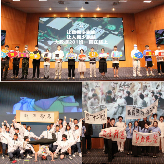 本次班门弄斧评比历时一个多月,覆盖我院40个班级,近2000名学生热情参与。大数据201班团的舞台剧《恰时来》,展示了大数据学子“让数据多跑路,让人民少跑腿”的美好愿景;大数据211班团带来的串烧《青春有你》展示了班团成员积极奋发,活力四射的青春姿态;电商201班团的合唱+手势舞《我和我的祖国》用电商青年说的表演形式,展示了他们的学术专业性和为祖国奉献的美好愿景。