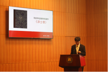 生环学院杨光珍讲述了习近平总书记推荐的著作《老人与海》,使同学们重新在这本经典名著中得到了新的意义:在困难前一次又一次坚定不移,永远满怀希望的奔向未来。段丹丹通过习近平总书记在浙江的故事—杭州湾跨海大桥的建造,代表了浙江精神,也展现了浙江人民的务实肯干、勇于创新。