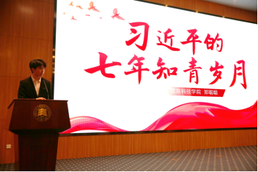 信息学院秦虞皓通过习近平总书记推荐的著作《浮士德》,说明了生命只有不断追求,才能实现人生的理想和价值。郑聪聪分享的《习近平的七年知青岁月》,让同学们认识到了一个自强不息,笃行载物的习近平总书记。继续教育学院的张政以《摆脱贫困》仔细分析了如何实现脱贫攻坚战,号召新时代大学生应当做一个有理想,敢担当的新青年。