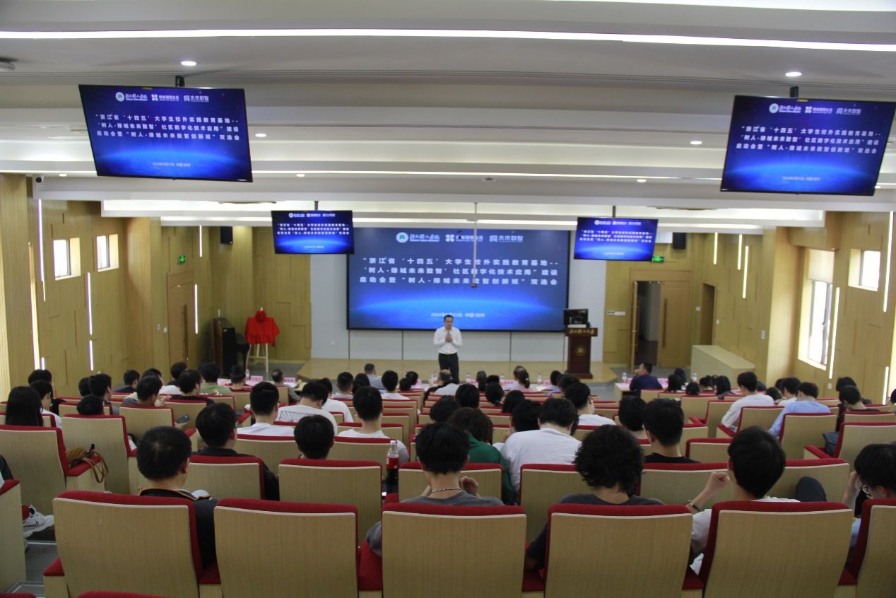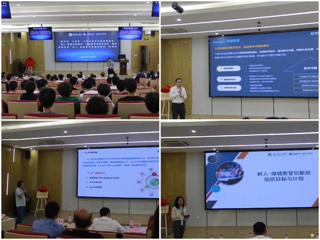 会议第二阶段,陈霄向同学们讲解了未来社区的政策与宏观趋势,介绍了绿城未来数智科技有限公司在数字化产业的发展规划;周志湖从技术层面介绍了未来社区解决方案;苏子漪介绍了“树人-绿城未来数智创新班”的组织目标与实施计划。随后,企业和学生们进行了互动交流与双向选择。