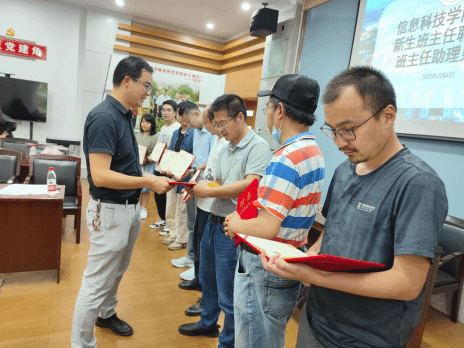 会后,丁书记为新生班主任举行了聘书颁发仪式。班主任在学生的学业生活中起着重要的指导和管理作用,他们负责指导学生的学习进程、解决问题,促进班级凝聚力和团队合作。举行聘任仪式旨在通过正式任命班主任的方式,为新生创造一个稳定和有组织的班级管理体系,以便他们在校园中顺利适应并获得全面的支持。