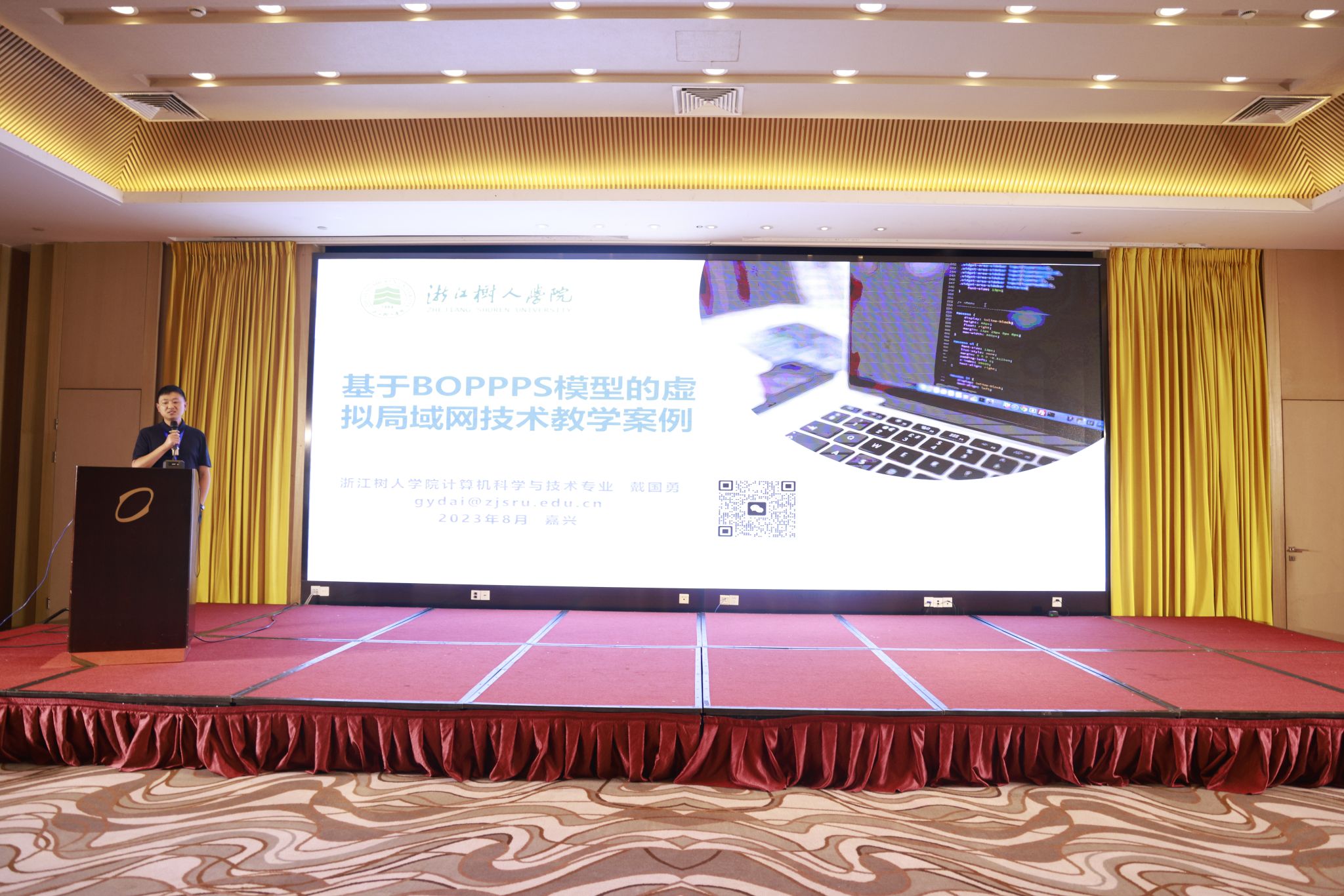 我院戴国勇老师在会上分享了计算机网络课程团队提交的《基于BOPPPS教学模型的虚拟局域网技术教学案例》,并向与会者介绍了伟德BETVLCTOR1946和计算机科学与技术专业的情况。