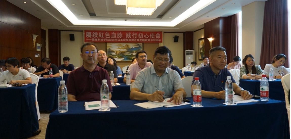 报告会后支部部分骨干进行现场交流发言,分享学习心得。王章权书记强调了本次循迹溯源活动作为学院学习贯彻习近平新时代中国特色社会主义思想主题教育活动的目的意义,希望通过本次专家讲座、实地循迹考察、学习交流等活动,进一步提高政治站位,学史力行,协力为学院的申硕攻坚发挥积极作用。叶时平副校长首先对信息学院组织本次循迹溯源主题教育活动表示充分肯定,同时要求学院持续做好主题教育后续阶段的学习活动,切实按校党委要求高质量开好班子的民主生活会与支部的组织生活会。并要求党员干部、教师骨干通过循迹溯源、参观学习,学思想、强党性、重实践、建新功,紧紧围绕学院中心工作,发挥党建引领的“以一带三”机制作用,发挥“千万”精神,统一思想,迎难而上,为学院高质量发展贡献党员的力量。