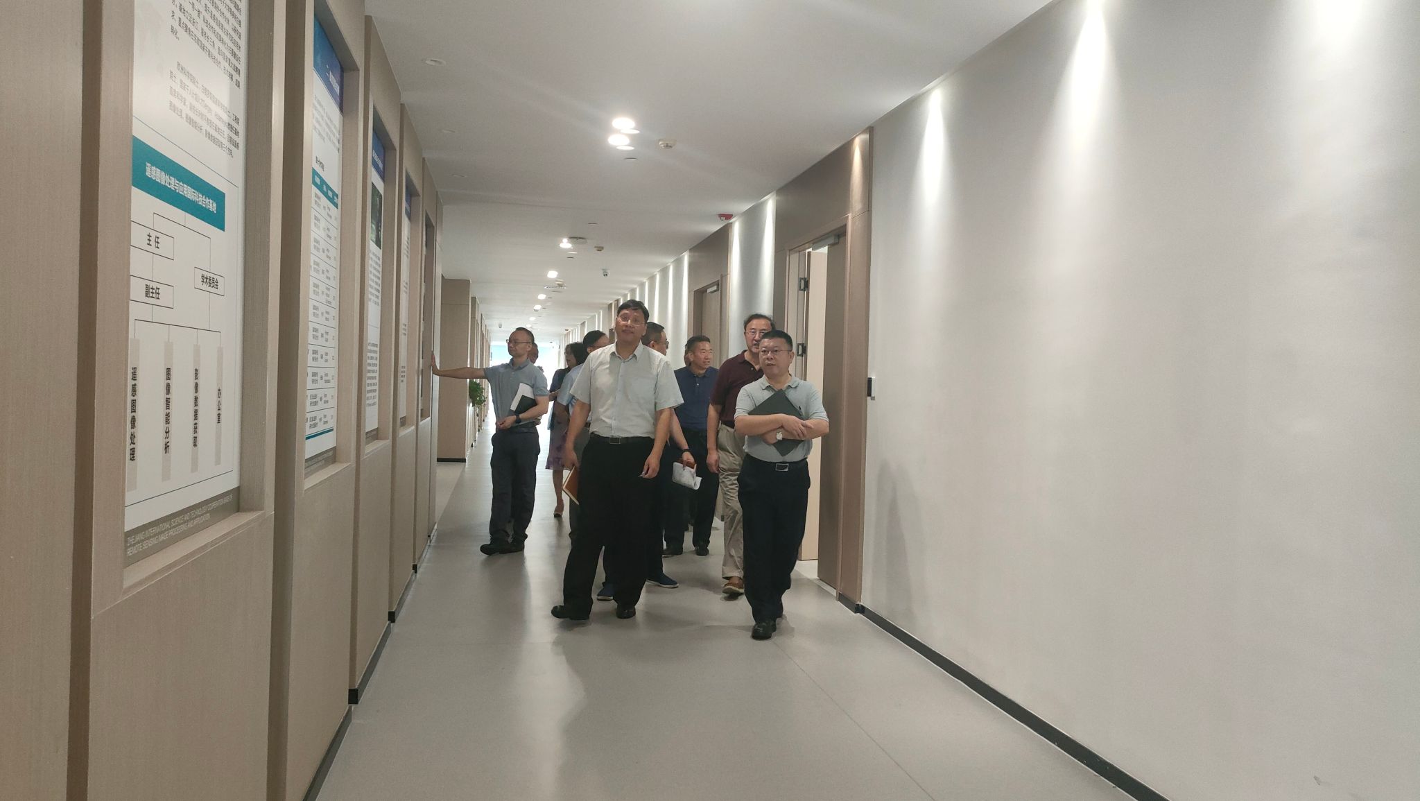 章清一行首先对图信楼7楼-10楼医工信研究院相关场地进行走访考察,对医工信研究院当前的空间使用情况、已建设备情况进行较好的了解,并提出针对性的建议和要求,后在图信楼8楼会议室组织研讨交流。