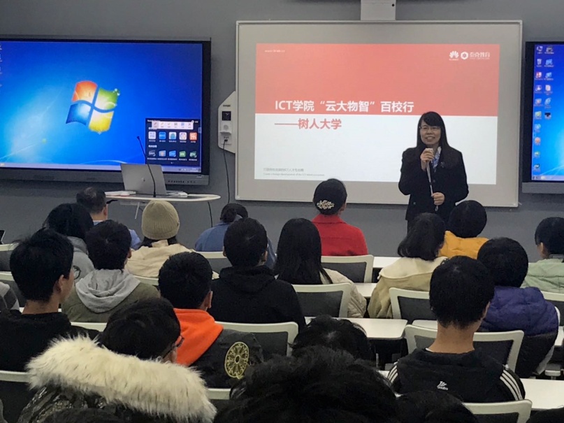 近期,华为公司“云大物智”百校行活动在我校A4-201多媒体教室成功举行,华为浙江区ICT学院负责人牛凤平、华为合作伙伴泰克教育经理林丽、信息学院任条娟院长、通信教研室所有教师等受邀出席本次活动。当下智能社会正在到来,各行各业数字化转型正在深入,而ICT人才则是数字化转型的关键和驱动力。《中国ICT人才生态白皮书》指出,到2020年ICT人才缺口将达1246万。而基于云计算、大数据、物联网、人工智能等新型ICT技术的精英人才更是行业亟需。而华为ICT学院“云大物智 ”百校行系列活动正是为此而生,传播ICT理念,培养ICT技术精英。