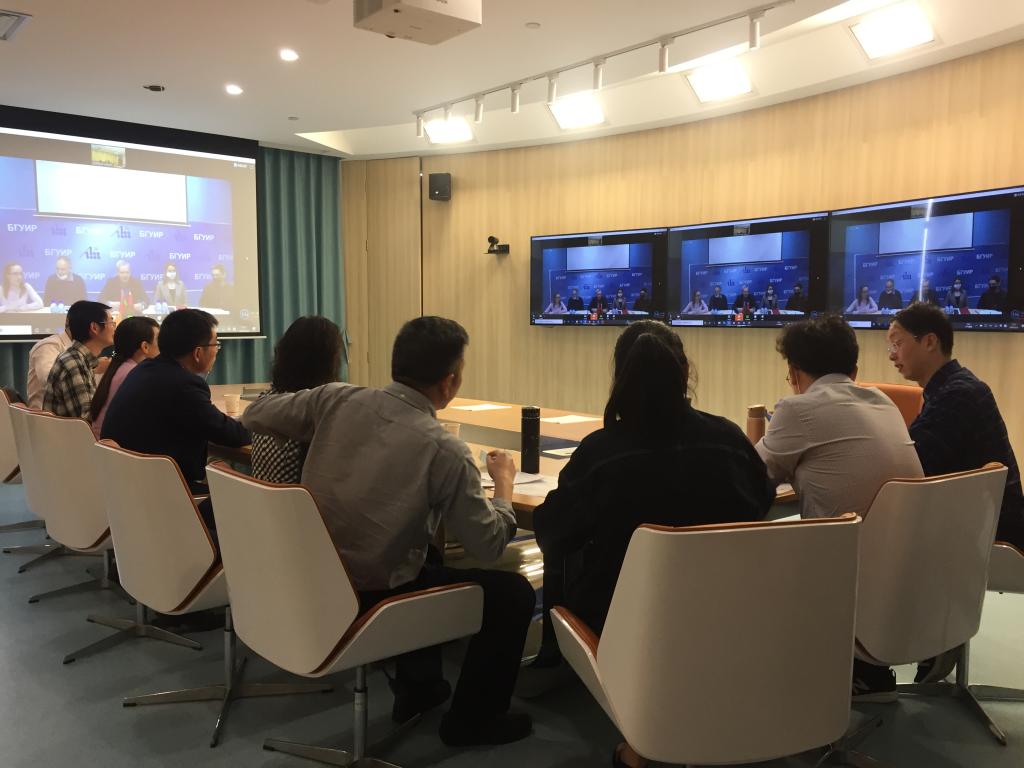首先,白俄罗斯国立无线电大学副校长Anatoly Osipov出席了此次云会次,浙江树人大学副校长陈浚教授和Anatoly Osipov代表两校相互致词。同时,陈校长表示,学校一直来高度重视国际科技合作与交流,在国家“一带一路”倡议下,把白俄罗斯作为学校最主要合作国家,并持续推动。信息学院近年来积极开展与白俄罗斯国立大学、白俄罗斯国立无线电大学“中白遥感图像处理与应用国际科技合作基地”、“中白图像处理研究中心”建设和研究工作,已取得了较好成果,他相信通过此次云学术研讨会的召开,必将更好了加深了解,增进友谊,深化合作,期待后续结出硕果。国交处胡建伟处长出席了此次云会议。