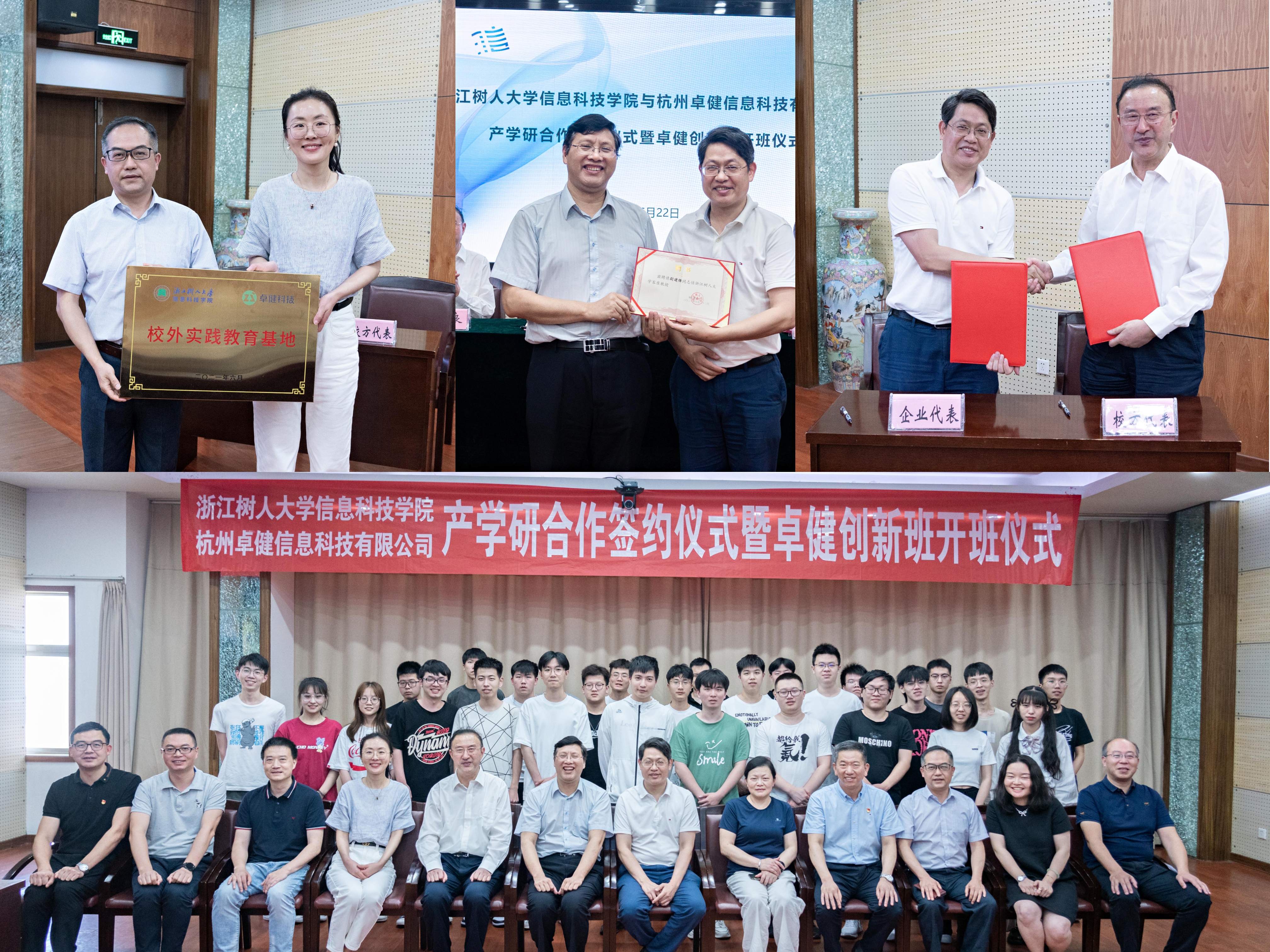 为深入推进产学研合作,加强校企协作,强化与生命健康、智慧医疗等领域医工信学科融合,助推应用型院校建设。6月22日下午,伟德BETVLCTOR1946在拱宸桥校区行政楼6楼隆重举行伟德BETVLCTOR1946与杭州卓健信息科技有限公司产学研合作签约仪式暨卓健创新班开班仪式。杭州卓健信息科技有限公司总裁尉建锋博士、浙江树人大学副校长叶时平、教务处副处长金建昌应邀出席,伟德BETVLCTOR1946领导班子、部分教师代表、卓健创新班全体学生参加了签约及开班仪式。会议由伟德BETVLCTOR1946党委书记兼常务副院长王章权主持。