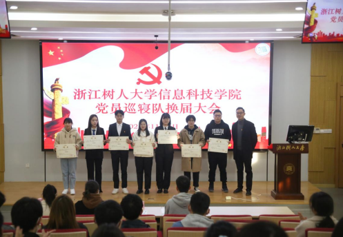随后,主持人宣读“党员巡寝队”离任名单,丁书记为离任队长颁发聘书并合影留念。第一届“党员巡寝队”总队长林正潮总结上一年工作并简单介绍了“党员巡寝队”工作职责及工作规范。接着,主持人宣读了新任党员巡寝队队长名单,辅导员徐佳锋老师为党员巡寝队代表授牌,并亲手给他们戴上工作牌。第二届党员巡寝队总队长夏小天代表“党员巡寝队”全体成员发言,他表示我队将认真执行宿区自律管理办法,坚持“全心全意为同学服务”的原则,以打造温馨寝室为目的,以传承先锋信息精神为导向,以检查监督为抓手,以说服教育为手段,来全面提升学生自律意识,促进学院文明寝室建设。对宿区作息情况进行检查上报,对违纪行为视情况进行制止、劝导、说服、指正,并积极配合学院宿区管理工作,促进学生宿区的文化建设,创建良好的寝室氛围!最后,全体成员合影留念。