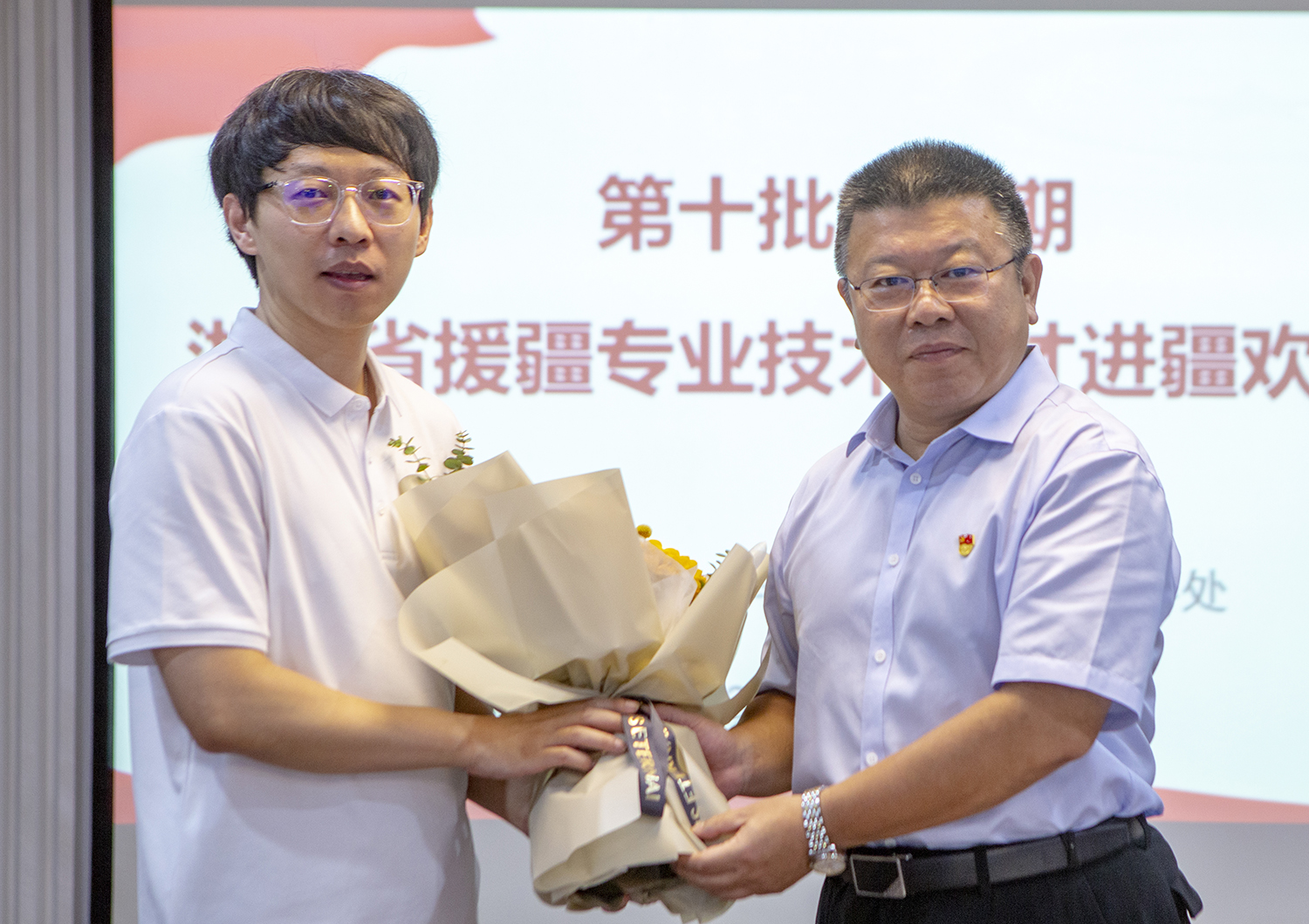 欢送会上,林峰首先宣读了浙江省教育厅办公室关于援疆的有关文件,介绍了援疆工作相关政策和学校选拔推荐情况。陈浚副校长进行了行前动员和教育。他指出,王群同志能够在严格的选拔中脱颖而出,代表学校支援祖国边疆,充分体现该同志政治素质过硬、业务能力突出、工作表现优异。援疆工作作为一项政治任务,他要求王群同志要始终牢记自己是一名党员、始终牢记自己是一名浙江人、始终牢记自己是一名树大人,到新疆工作,既代表学校形象,也要展示浙江风采,希望把浙江的先进方法、理念带到新疆,始终保持政治站位,把安全牢牢放在心上,圆满地完成援疆任务。