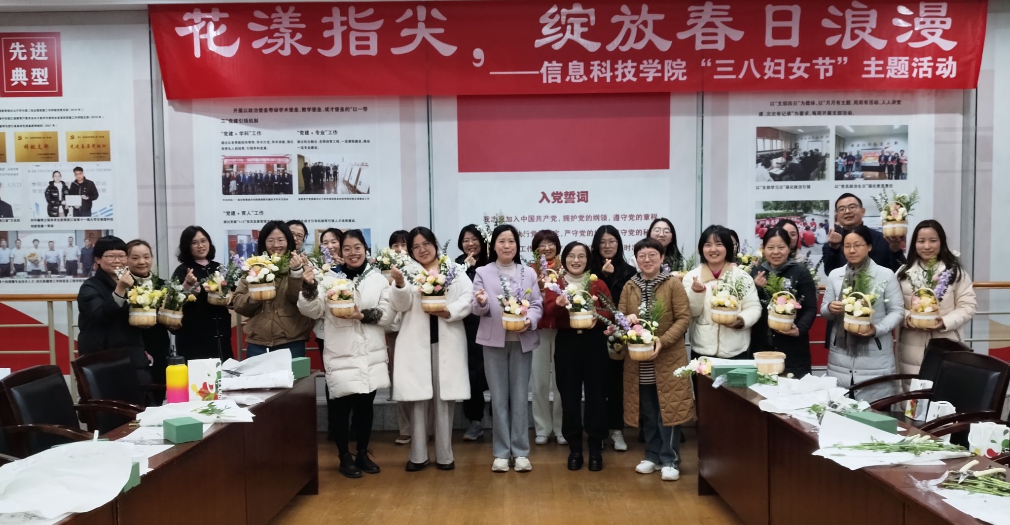 学院党委书记陈超祥书记在活动总结中表示:“科技与艺术从来不是对立面,希望这场花艺美学体验能成为女教职工们忙碌科研教学中的诗意栖居。学院分工会将持续创新活动形式,让‘她力量’在智慧与温情的交融中持续绽放。”活动最后,全体人员在缤纷花艺作品前合影留念,将春日的美好定格为永恒记忆。