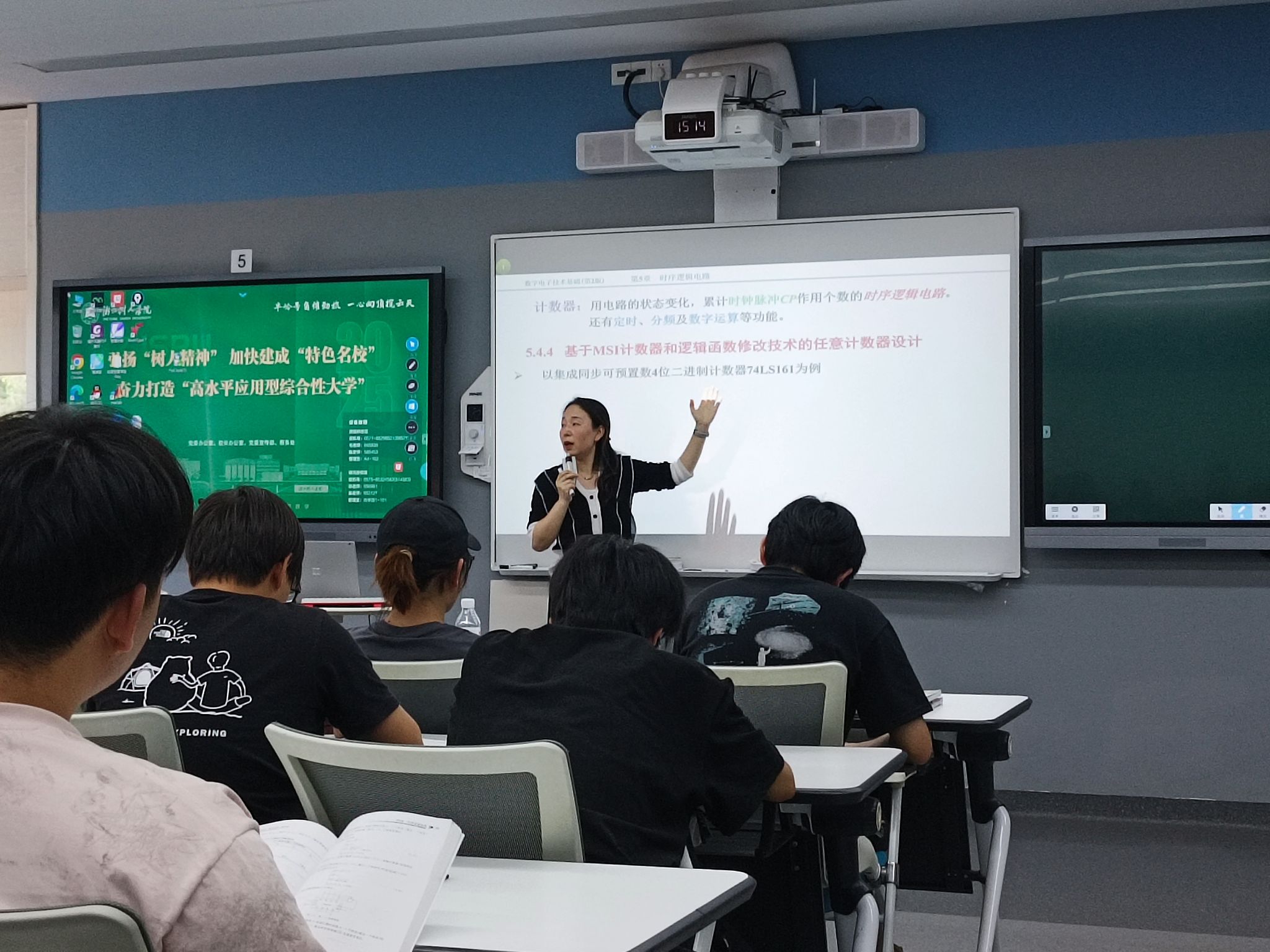 为贯彻学校课堂教学质量提升专项行动要求,深入推进教风学风建设,5月12日,伟德BETVLCTOR1946在智慧教室举办《数字电子技术与实验》课程教学示范活动。本次公开课以集成芯片的计数器设计为主题,由连续九年获得课堂教学质量评价优秀奖的尉理哲老师主讲,青年教师代表及人工智能241、242班学生共同参与。