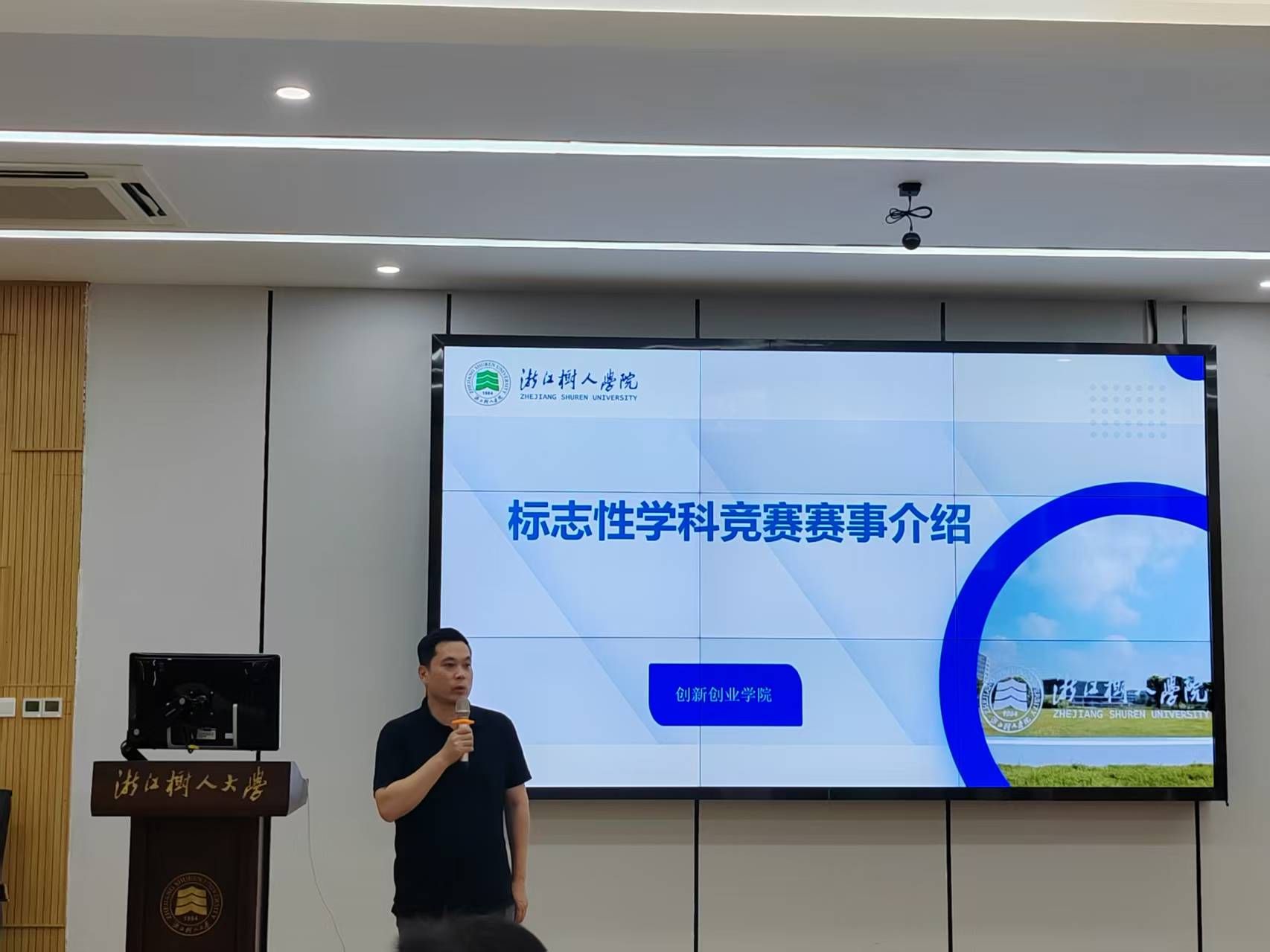 双创学院郭丰院长应邀开展标志性学科竞赛讲座。他从标志性学科赛事的范畴界定、背景特点等方面展开讲解,全面介绍了学校为标志性学科赛事制定的系列激励措施,并分享了优质项目的挖掘培育要点以及参赛过程中的各类注意事项等实用建议,在场师生纷纷表示受益良多。