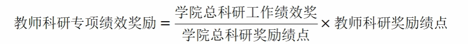 (1) 其绩效奖励根据每位教师科研绩点乘以权重系数得到的科研奖励绩点按以下公式计算: