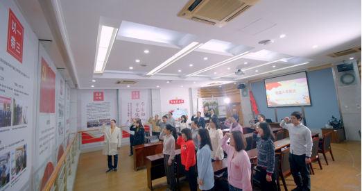 全体党员聚拢在党旗下,在支部书记陈友荣同志带领下,重温入党誓词,接受心灵的净化和洗礼。铿锵恢弘的誓言,强烈震撼着在场的每一位党员,一字一句,神圣而豪迈;铮铮誓言,体现了对中国共产党的无限忠诚。