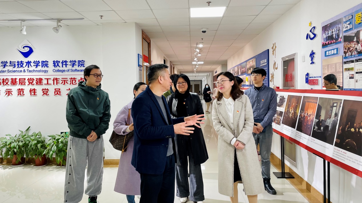 随后双方开展了交流学习,毛诗焙副书记就软件学院概况、党建样板支部建设和“抓稳定、强基础、固品牌、促发展”的“计E”思政全育人体系工作做了详细的介绍。双方就党建工作服务中心工作途径、样板支部特色化建设、学生党员的培养与作用发挥、学生综合素质提升、思政辅导员工作开展等多方面做了深入的探讨与交流。