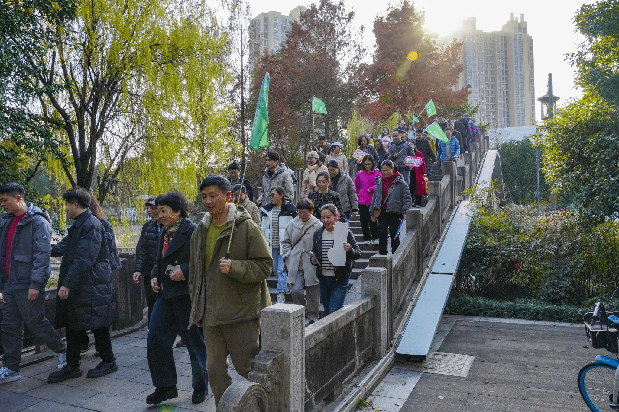 随着校长李鲁宣布“树人走运,出发!”鸣枪,全体教师浩浩荡荡出发。大家在树人校旗的引领下,沿着上塘河3公里的路程边走边看、畅聊新年:欢歌笑语、风景如画,既能舒缓压力、愉悦身心;擘画未来、蓝图如虹,又有助于凝心聚力、提振精神。
