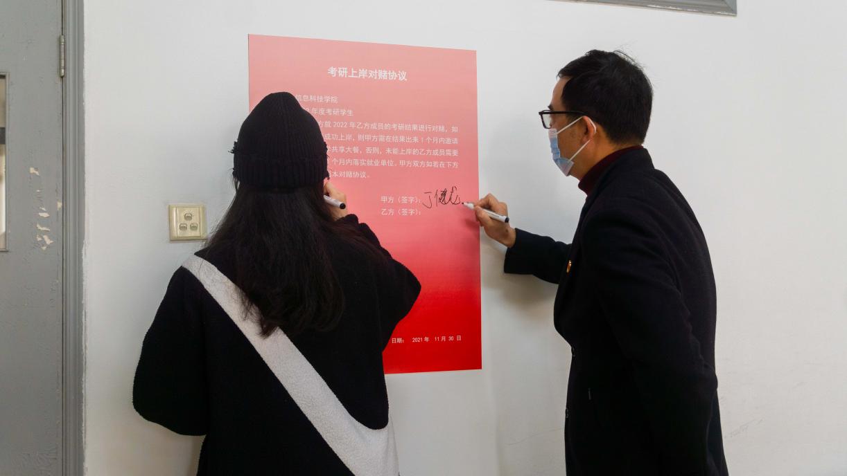 丁健龙副书记也表示了对考研学生的支持与祝福。希望考研的同学们能保持好现在应有的节奏,稳扎稳打,多多钻研,努力克服遇到 的困难,并鼓励考研学子签字表明考研上岸决心。