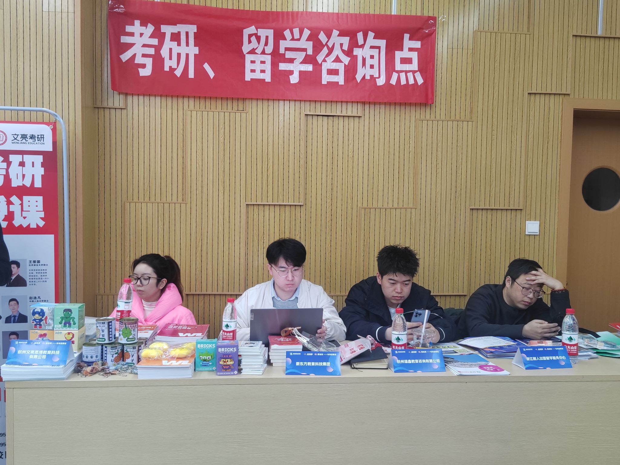 会后,在学院招聘会现场还设有考研、留学公益咨询点,邀请近十家相关机构为学生考研、留学中遇到的相关问题做了详细解答。