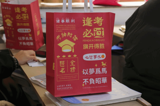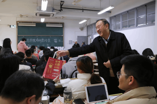 院长王万良代表学院对全体考研同学表示了诚挚的慰问,肯定了大家在备考期间所付出的辛勤努力。希望大家能够珍惜这段宝贵的备考时光,坚定信心,迎难而上,用实际行动为自己的梦想奋斗。同时也欢迎同学们在备考过程中有需要,积极向学院寻求帮助和支持,学院将全力为同学们的考研之路保驾护航。随后到场老师与同学们深入交流考研过程中遇到的问题,向同学们表示鼓励并发放了考研鼓励包,包内包括考研文具、牛奶,学院领导、班主任、辅导员们给考研学生们的手写祝福,家扬学院为考研学生们准备的暖心奶茶等。一份份礼物寓意深刻,饱含真情,同时学院领导、班主任、辅导员们也为考研学生们录制了加油视频,收到心意满满的鼓励之后,同学们纷纷表示一定会坚持到底,不负期待。