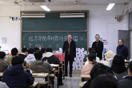 此次慰问活动缓解了学生的备考压力,增强了学生们的迎考信心,进一步营造了良好的学风学纪。信息学院历来重视学院考研工作,今年以来,学院开展了一系列考研辅导助力活动,鼓励学生深造,提升核心竞争力。相信在学院的关怀支持以及同学们的共同努力下,同学们能够以笔为剑,披荆斩棘,一战成硕!