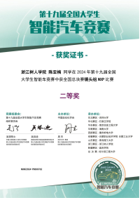 赛道上,他是精准调参、调速控距的技术骨干;研发中,他是算法优化、系统集成的主力担当。自2023年9月起,智能汽车竞赛训练正式采用“长训模式”,要求参赛同学在实验室进行长期训练与持续积累。正是凭借这种系统化、常态化的备赛机制,陈亚楠及智能车实验室全体成员在2024年8月的哈尔滨全国赛场上奋勇争先、斩获佳绩,载誉而归。这一优异成绩,凝聚着他们一年多来坚持不懈的努力与默默付出。