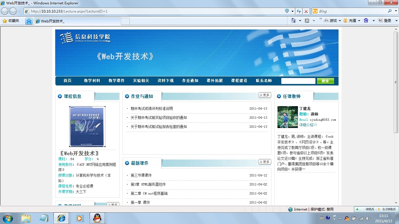 课程中心将本学院各专业的课程集中在一起,为每门课程提供一个专门的管理与共享平台,您可以设置您的课程信息,同时也可以将各类教学材料及共享资源发布到该平台;同时也可发布各类通知、上传各类课件。从而让您的学生能及时获得您所负责课程的各类信息。同时也可以作为您教学改革及课程建设的“教学平台”。希望各位老师能好好地利用该平台。