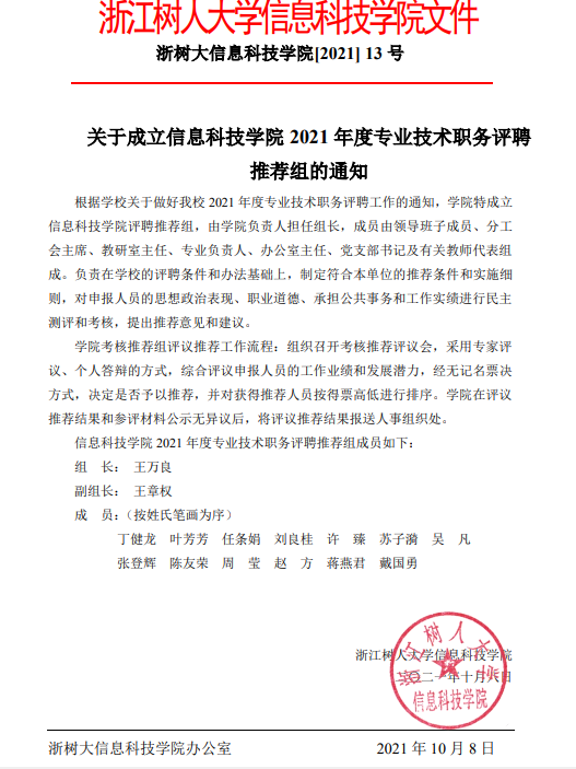 关于成立我院2021年度专业技术职务评聘推荐组的通知