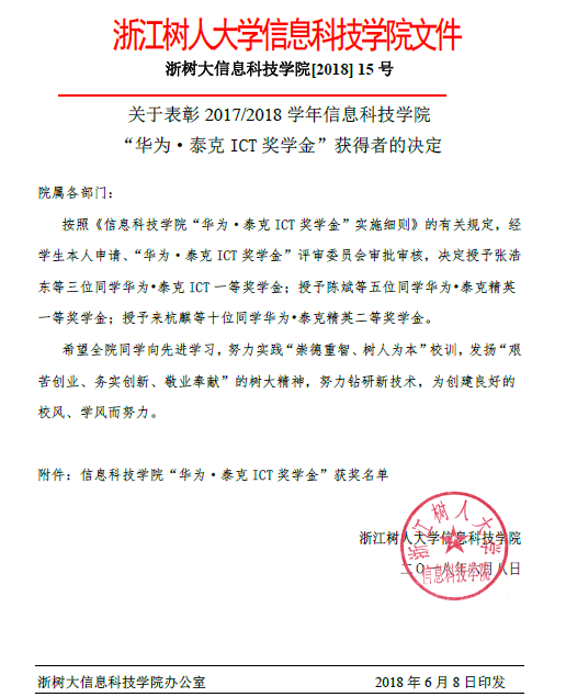 下一条:关于表彰华为ICT学院第二届届“华为泰克杯”ICT竞赛获奖同学的决定