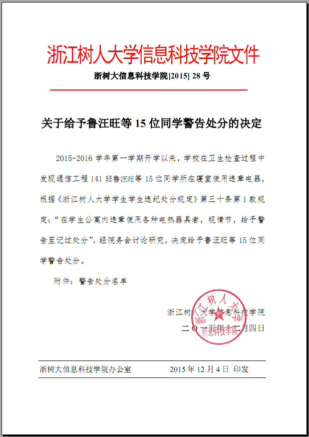 下一条:2015年27号 关于给予张文译等8位同学警告处分的决定